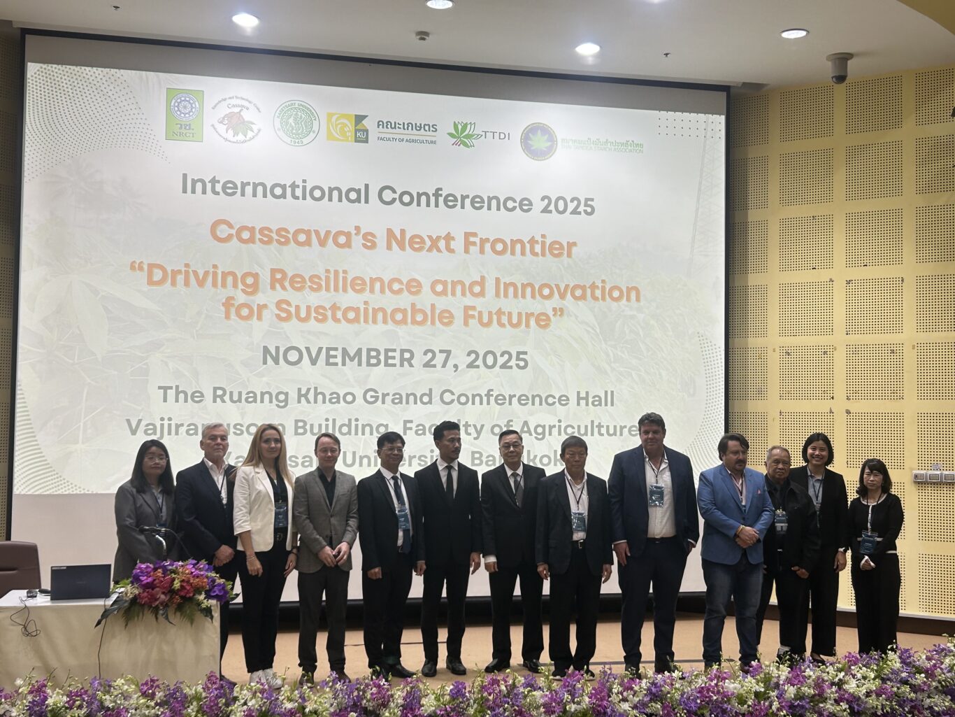 The Hub of Knowledge and Technology Center of Cassava, with support from the National Research Council of Thailand, the Faculty of Agriculture, Kasetsart University, the Thai Tapioca Development Institute, and the Thai Tapioca Starch Association, successfully organized the International Scientific Conference: Cassava’s Next Frontier 2025 – Driving Resilience and Innovation for a Sustainable Future at the Ruang Khao Grand Conference Hall, Vajiranusorn Building, Faculty of Agriculture, Kasetsart University, Bangkok.